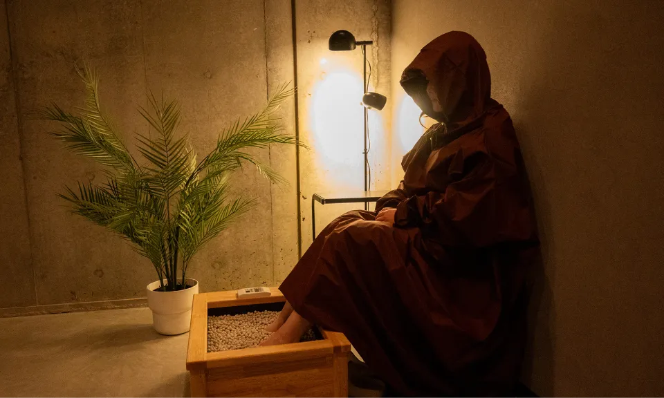 日常から一歩、静けさの奥へ。 ここは、誰にも邪魔されず、 自分の体と心に向き合うための温活空間。 余計な刺激を削ぎ落とし、 感覚は研ぎ澄まされ、 呼吸は自然と深くなる。 ただ汗をかくためではなく、 本来のリズムを取り戻すための、 静かな時間のためのサロン。